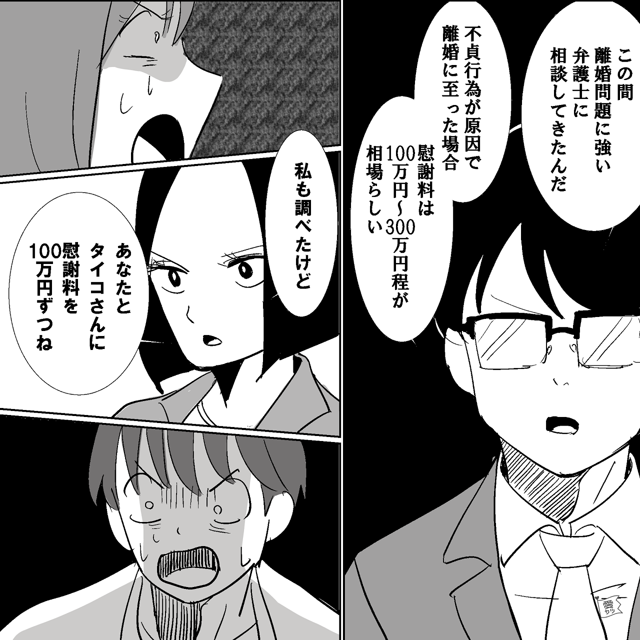 慰謝料の話をした途端、夫と浮気相手は口論になってしまいました…。