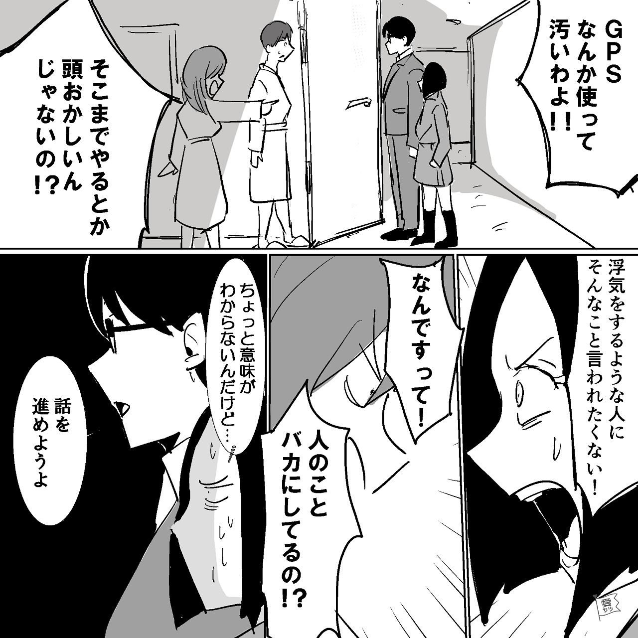夫に仕込んだGPSで、浮気現場に踏み込むことができた主人公。