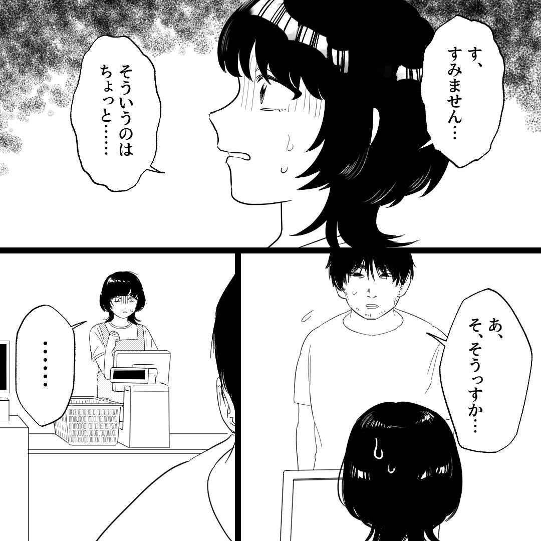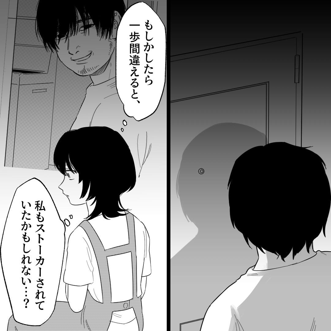 なんとか断った主人公でしたが、ストーカーの恐怖に怯えるのでした。