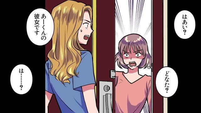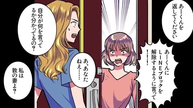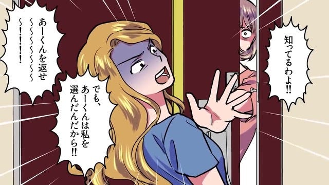 彼氏が既婚者だと知った主人公は、妻が出てくると彼氏を返せと迫ります。