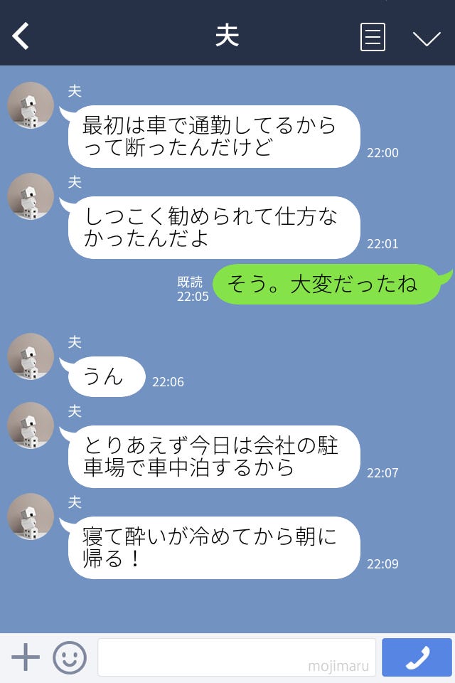 夫はそのまま車中泊で朝帰り