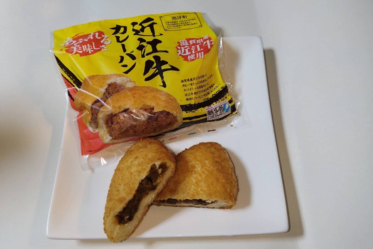 「近江牛カレーパン」341円 地産地消にこだわる「西洋軒」の人気商品のひとつが、厳選した近江牛を使った「近江牛カレーパン」。たっぷり入ったカレーの深いコクとスパイシーな風味、ゴロゴロとした肉の食感で食べ応え満点です。
