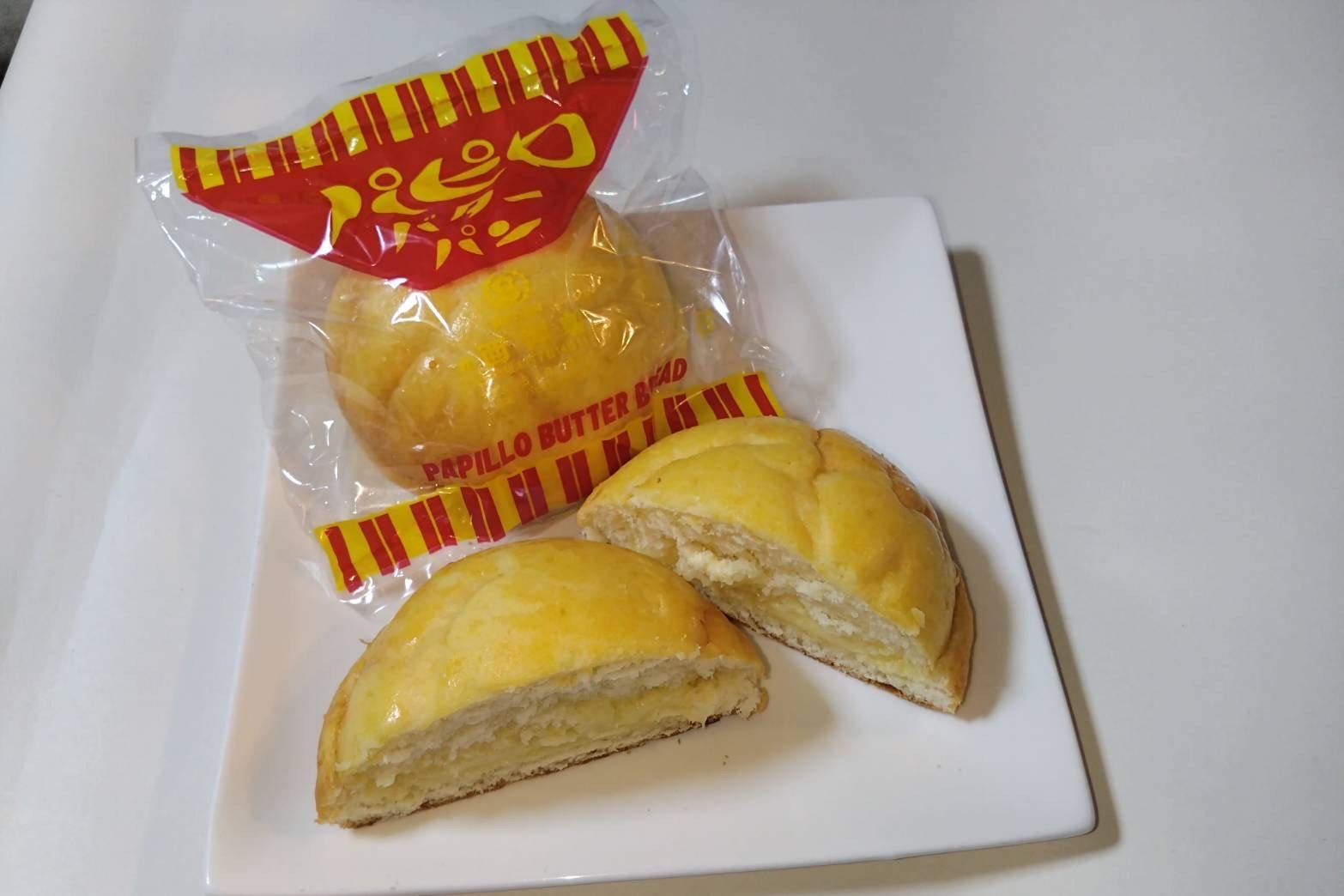 「パピロバターパン」123円 「パピロバターパン」は、ふんわりやわらかなメロンパンにクリーミーなバタークリームをたっぷりサンド。昔懐かしい味わいと赤と黄色の昭和レトロなパッケージが、幅広い世代から愛されています。