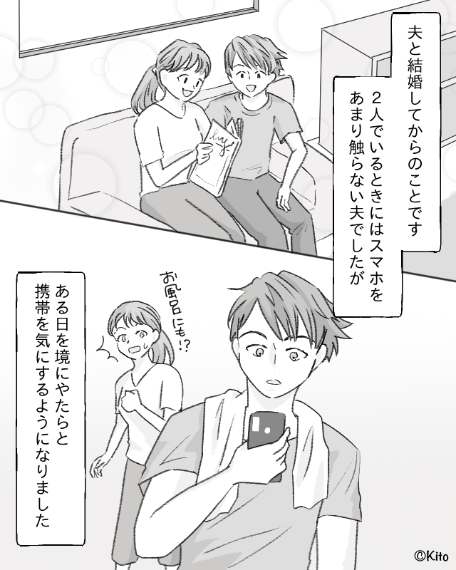 急にスマホを細かくチェックしだした夫に、違和感を覚える妻。