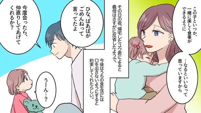 義母に反論した主人公は、いつか一緒に楽しく食事ができることを願っていることを伝えました。