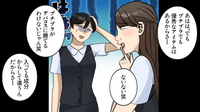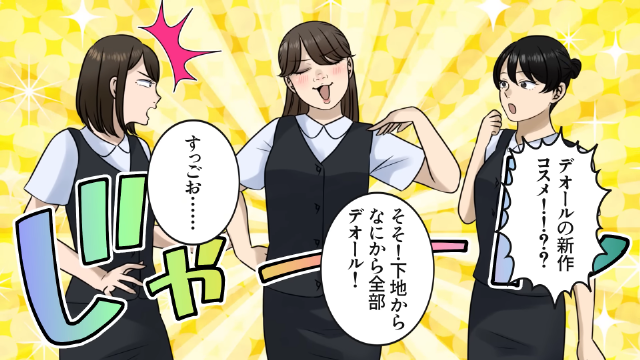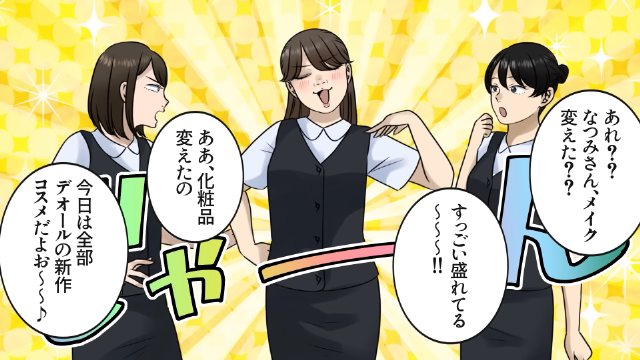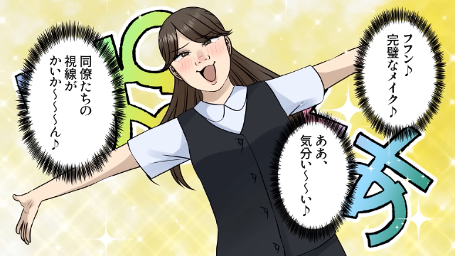 高価な化粧品でフルメイクをしていることを同僚に自慢するようになった主人公。