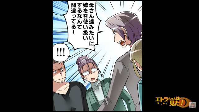 正解は「母さんたちみたいに嫁を召使い扱いするなんて間違ってる!」でした。