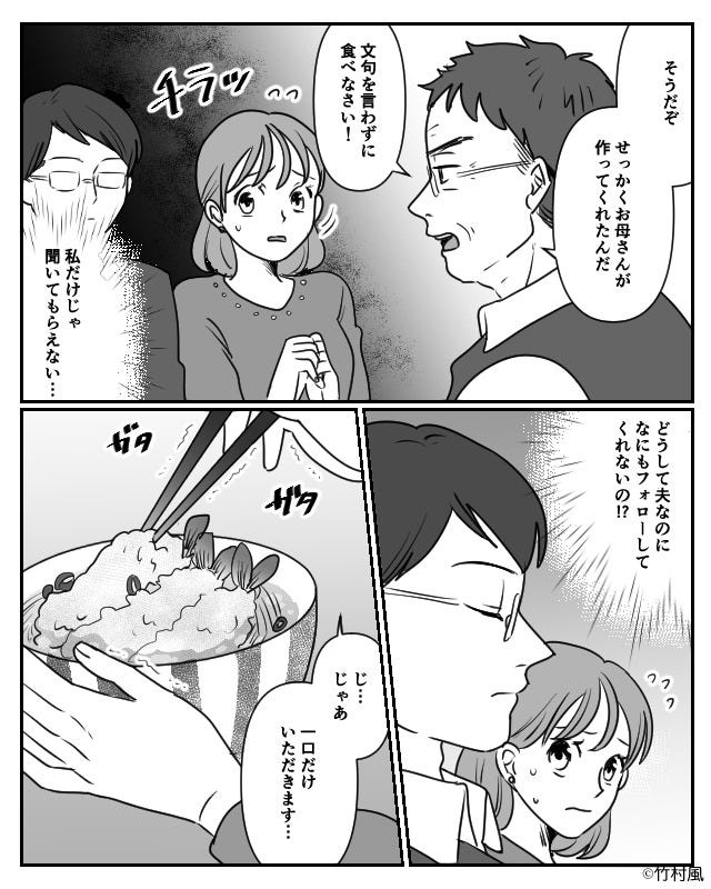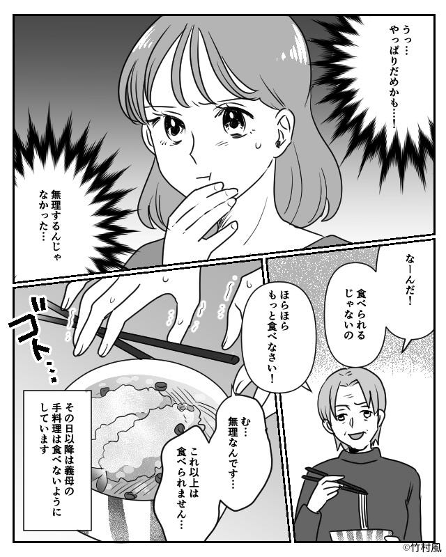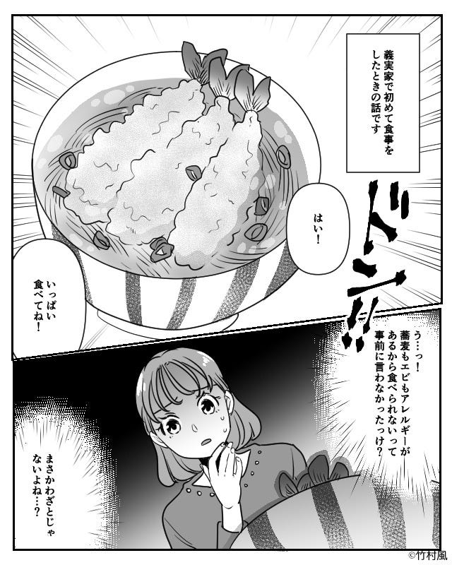 アレルギーとわかっても料理を食べさせようとする義両親。