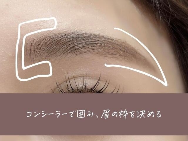 眉ペンシルで枠を決めてしまうと囲んだ時の線が浮き出てしまい、垢抜けからは遠ざかってしまいます。
