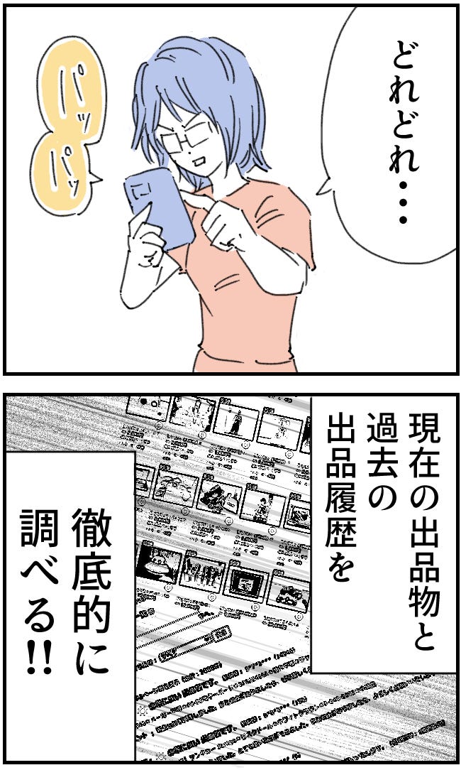 出品者の履歴を徹底的に調べる主人公。