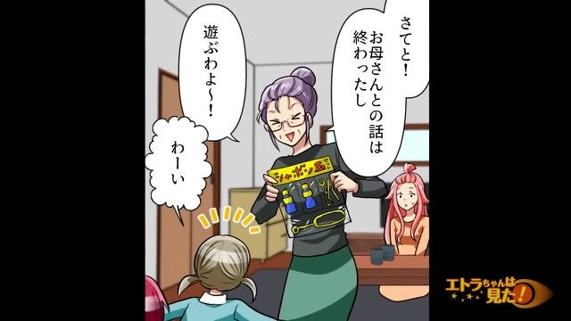 主人公とママ友についての話を終えた義母は、子どもたちと遊び始めました。