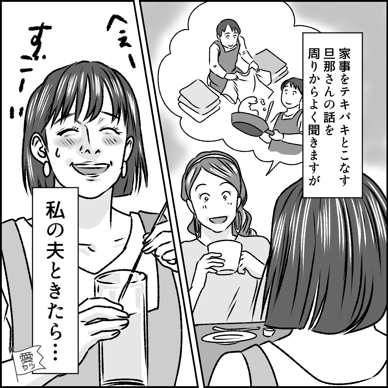 家事に積極的な旦那さんの話を周りから聞いていた主人公。