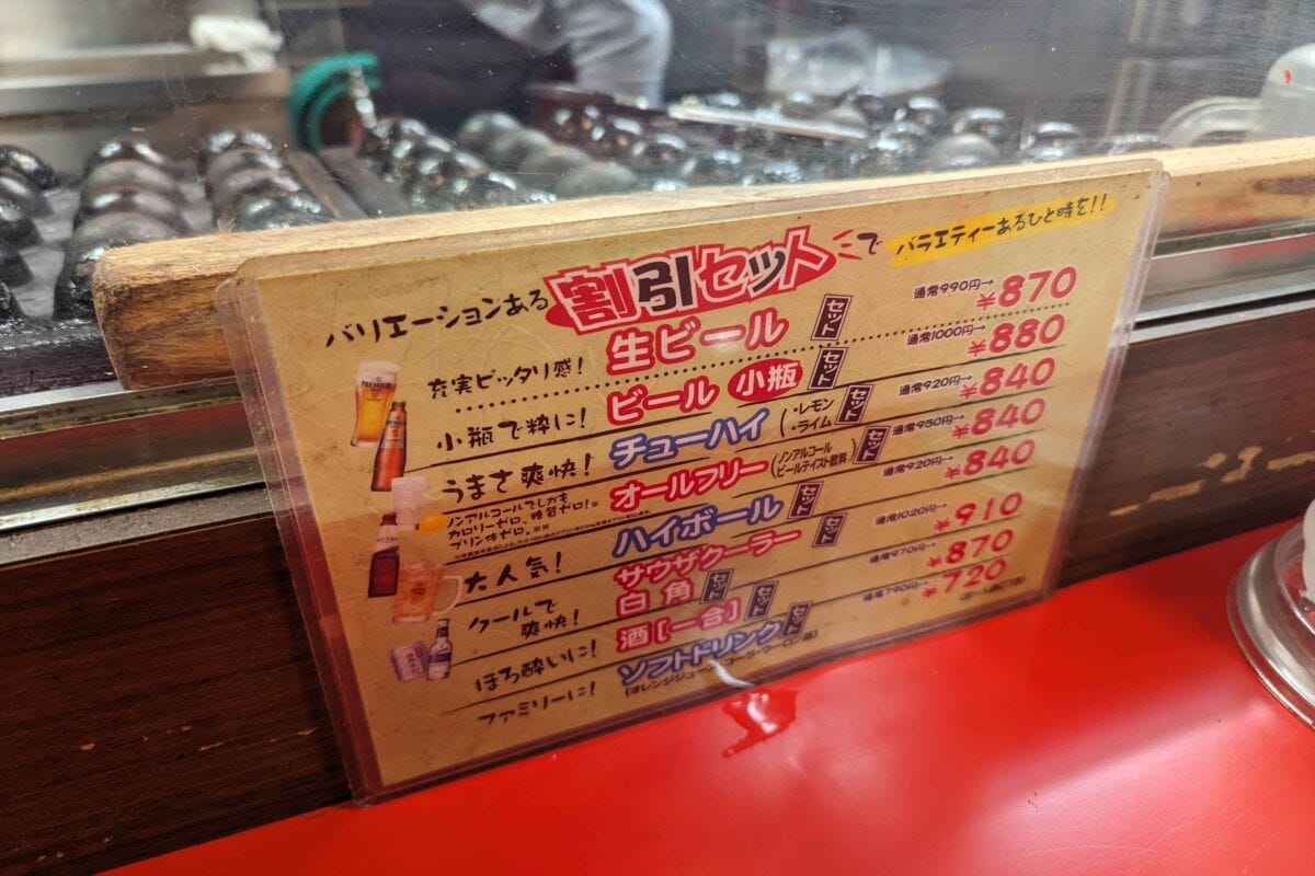 たこ焼きは単品で10個540円とリーズナブルなだけでなく、ドリンクとのセットも豊富。