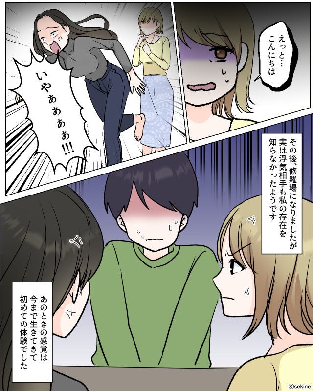 お土産をとりに行ったら、浮気相手の女性と遭遇してしまった主人公。