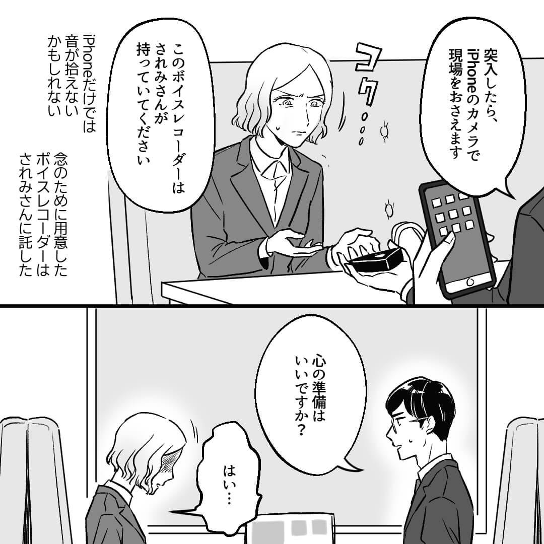 決定的な証拠を残すために念入りに打ち合わせをする主人公。