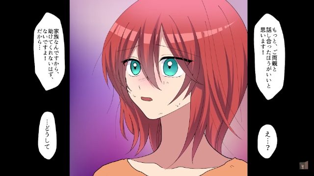 そんな話を聞いた主人公は涙して、両親と話し合いすることを勧めます。