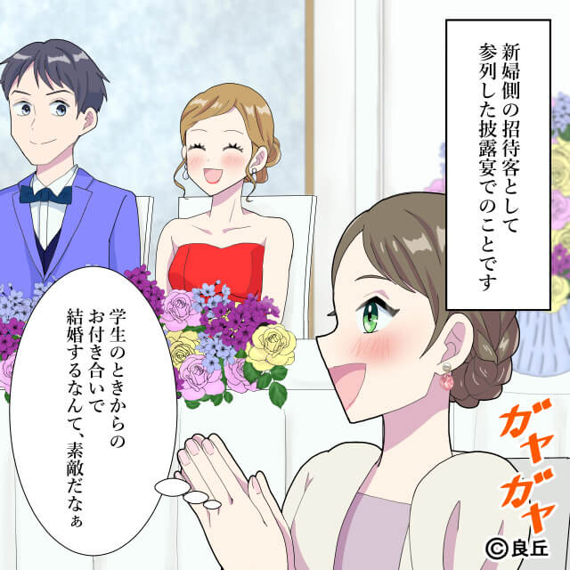 主人公は友人の披露宴に参列しました。