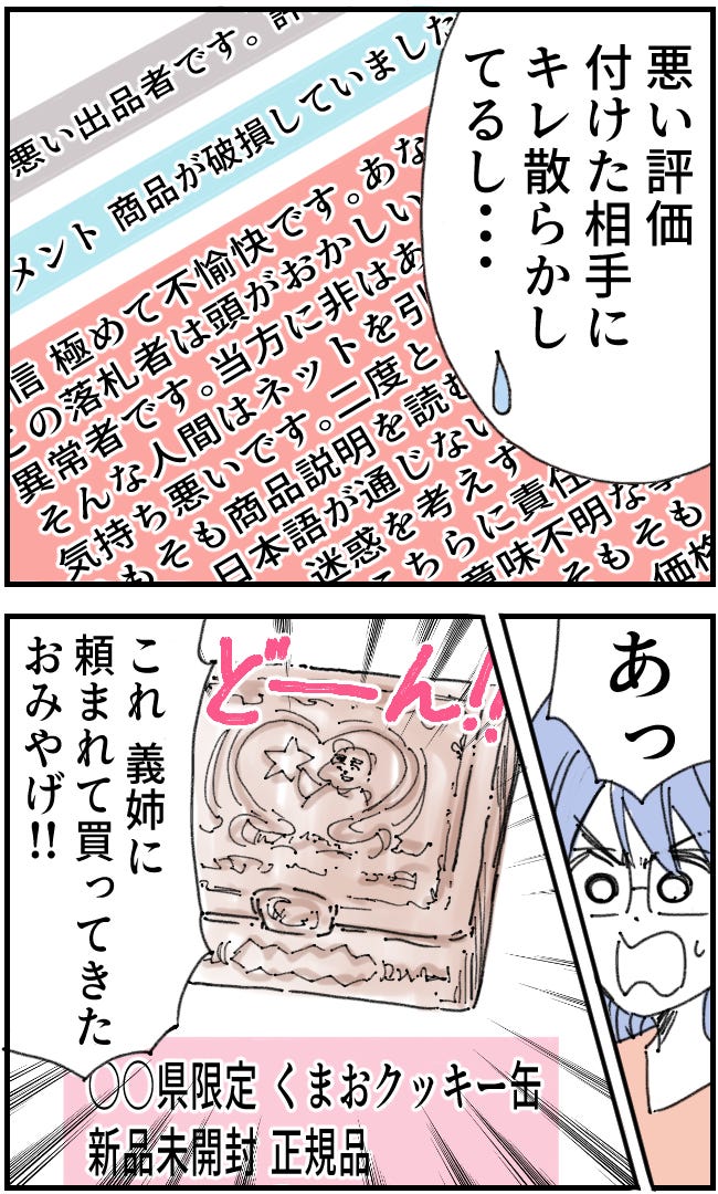 主人公は義姉かもしれない出品者の履歴を見てかなり転売していることを知ります。