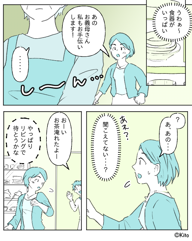 「私もお手伝いします!」と義母に声をかけましたが、聞こえていないのか返事がありません。
