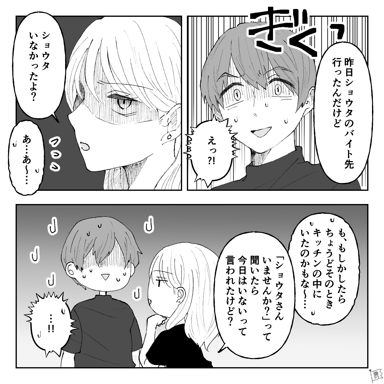 - 【漫画】彼女「あんたバイト先いなかったじゃん」彼氏「えっ!?」→ドタキャンに”嘘の理由”を言う彼氏…問い詰めると”予想外の事実”が発覚…