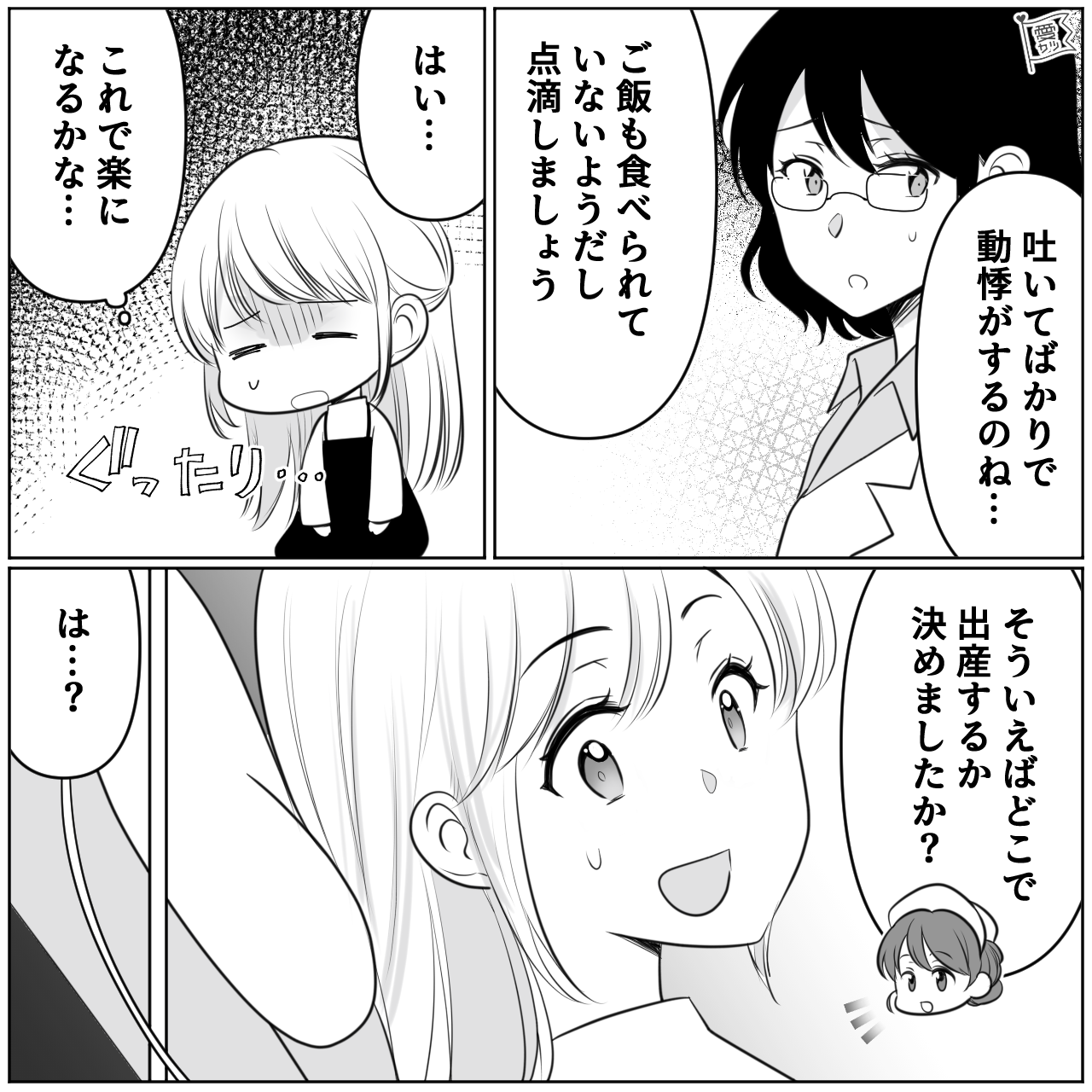 吐きつわりに悩み、予約なしで病院にかかった主人公ですが…。