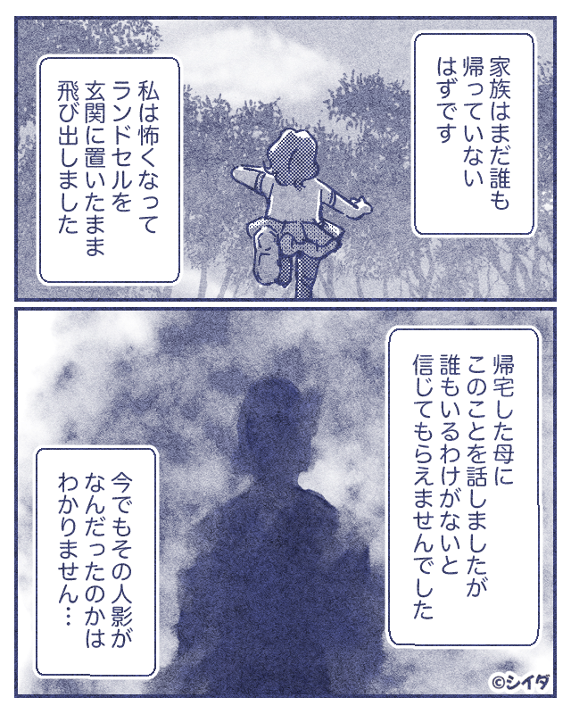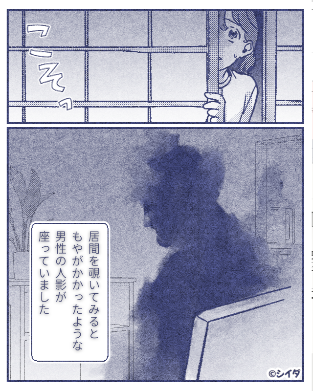 誰もいるはずのない家で、男性の影を見つけた主人公。