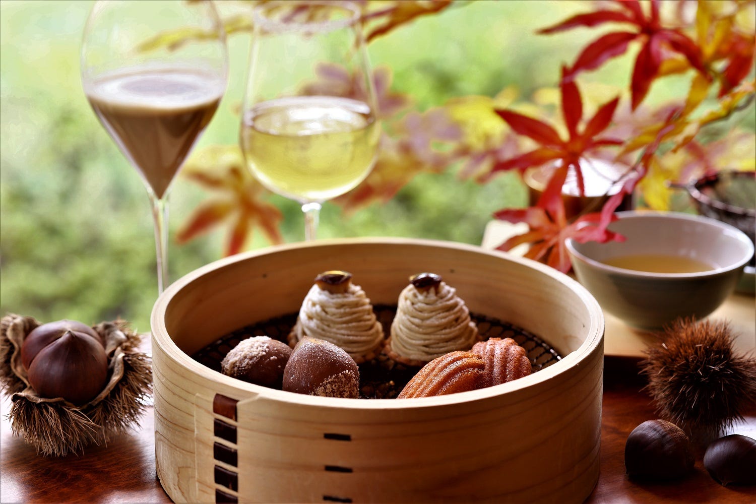 大粒で甘みが強く、しっとりとした「京丹波栗」を使った「京丹波栗のモンブラン」、栗のかわいらしさを表現した「京丹波栗のムース」などを、伝統の曲げわっぱで楽しめますよ!