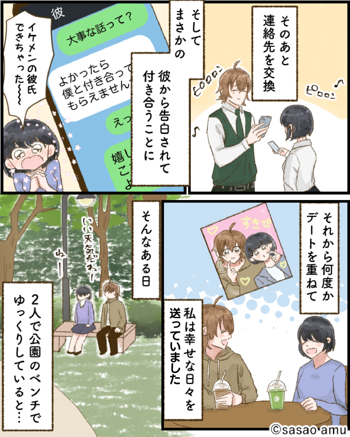 連絡先を交換し、その後なんと彼から告白されて付き合うことになったのです。