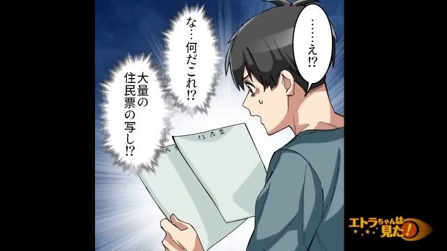 主人公が「なんだこれ!?」と拾い上げると、それはすべて父の住民票の写しでした。
