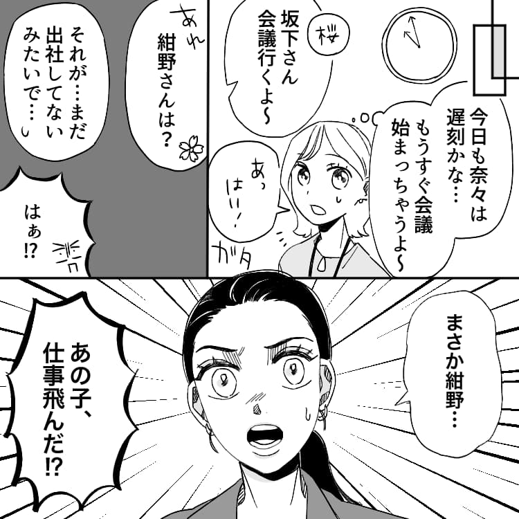 奈々はなんと会議の時間になっても、会社に来ません。