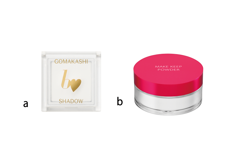 【a】ポイントメイクのもちをよくする仕込み「色もちアップやアイラインのにじみ予防など、ほぼ透明につくパウダーだから、あちこち使える」