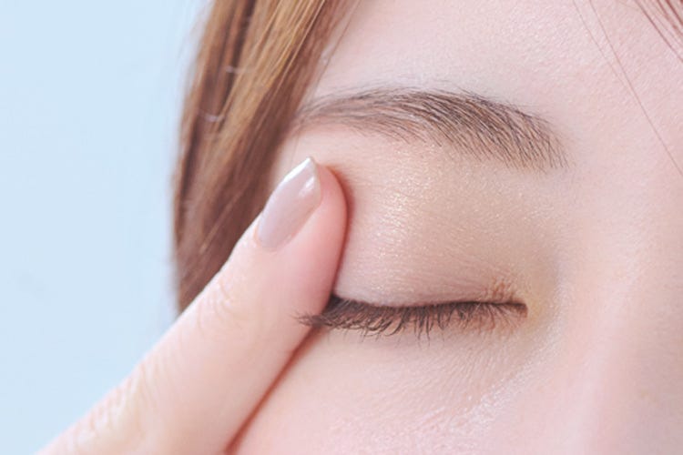 ①ラメを指で上まぶたに塗るキラキラを下地に仕込んだほうが自然に盛れる
