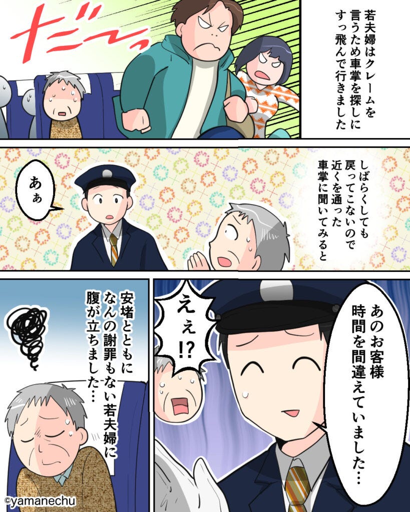 ダブルブッキングかと思いきや、若夫婦が新幹線の時間を間違っていたようです。