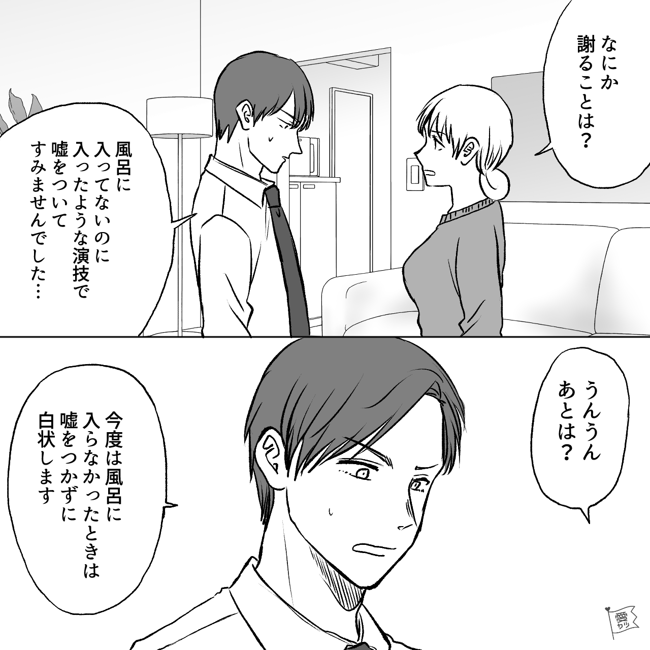 夫は、お風呂に入ったと嘘をついていたのです。