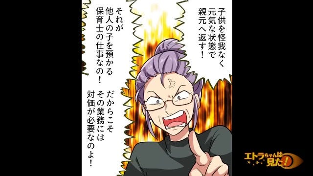 命を預かることの大変さをよく知っている義母は、保育士が対価をもらってその責任ある業務をしているとママ友に説きます。
