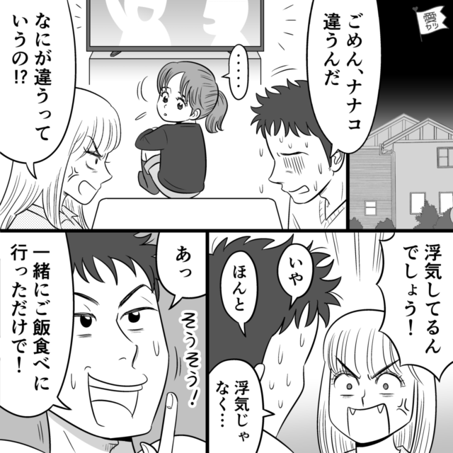 さらに主人公には会社の人と言うように娘に口止めしていたことが発覚し、夫を問い詰めます。