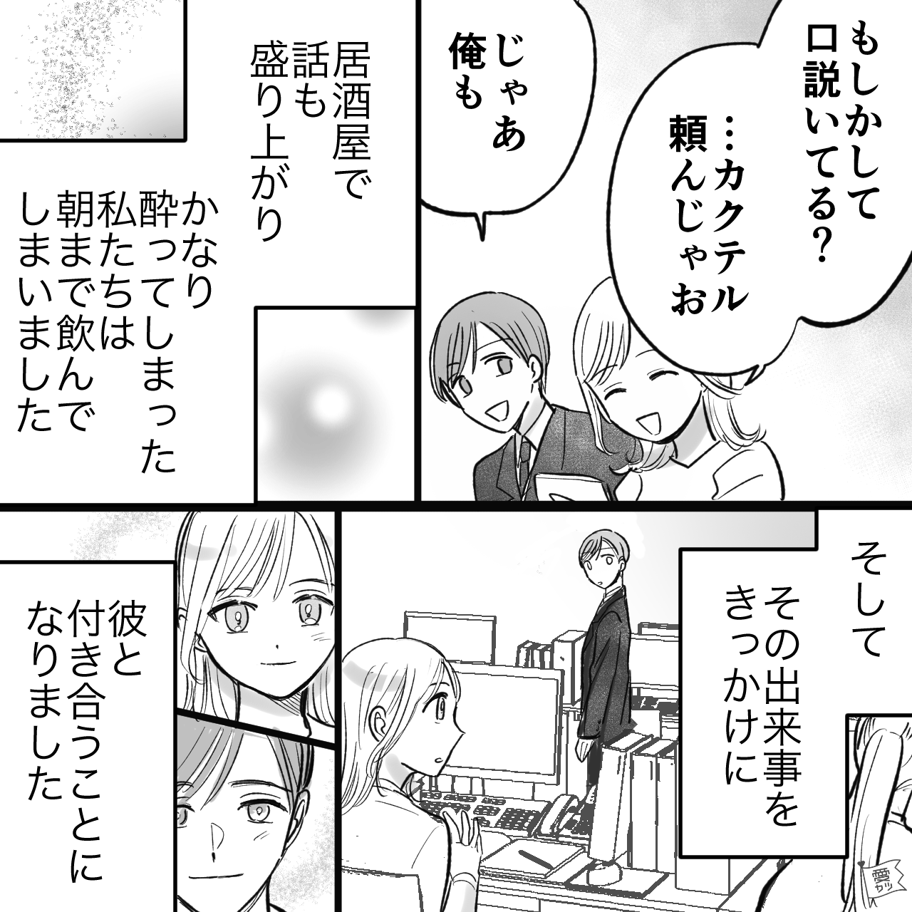 同僚に彼と付き合った報告をするはずだった主人公。