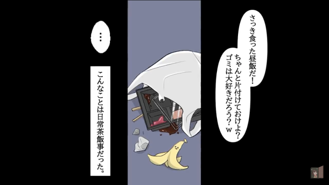 そして手に持っていたゴミ袋を床に投げつけると…。