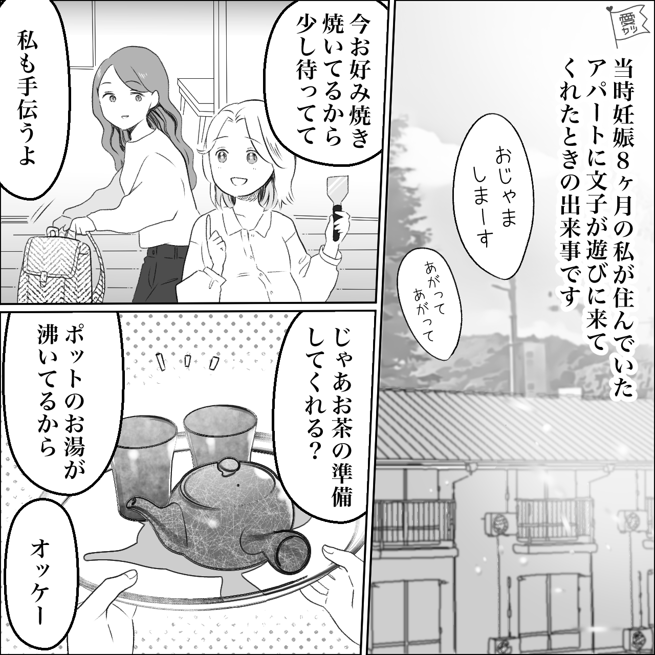 正解は「妊娠中の主人公がお茶の詰め替えを取ろうとした」でした。