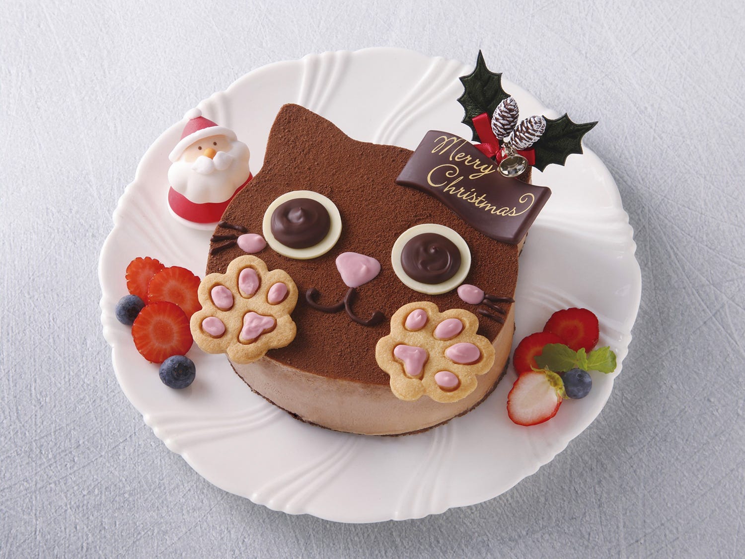全体をチョコムース、生地もチョコレートにし、チョコづくしで子どもも食べやすいケーキ。ケーキ本体がネコ型だから、チョコペンで顔を描いたり、クリスマスオーナメントを飾って自分なりのクリスマスケーキが楽しめる。