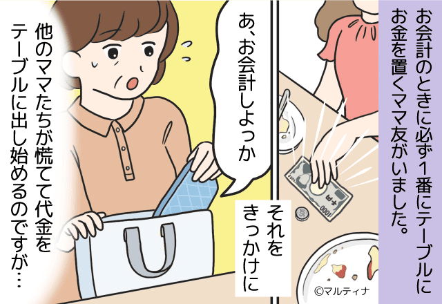 ママ友のなかに、会計時に必ず1番先にテーブルにお金を置くママ友がいました。