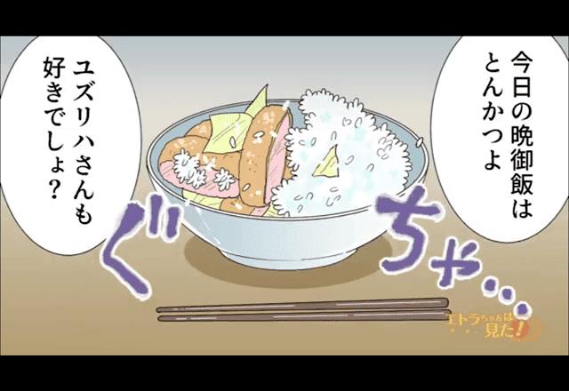 - ▶【漫画】義実家での食事中…義母「今日の夕食はとんかつよ~」嫁「…」嫁にだけ”ひどい盛り付け”の料理を出す義母!?→「いい加減にしろよ!」まさかの救世主が登場!