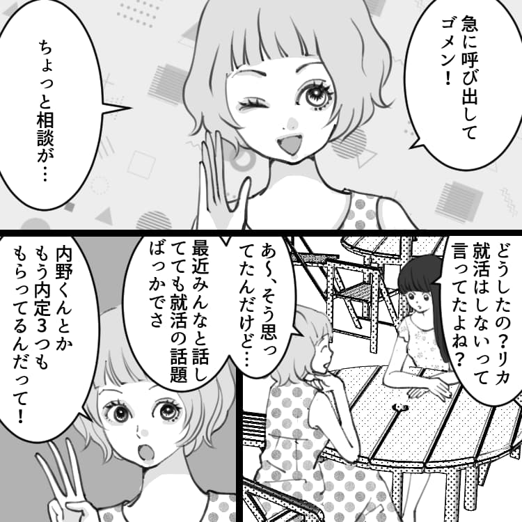 ある日、就活に関心のなかったはずのリカから「就活のことを教えてほしい」と頼まれます。