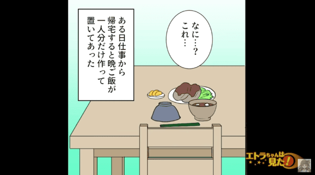- ▶【漫画】仕事から帰宅すると…「なに…?これ…」”心当たりのない夕食”が机の上に。夫も何も知らない様子で…→次の瞬間、料理を手に取り【まさかの行動】に出る!