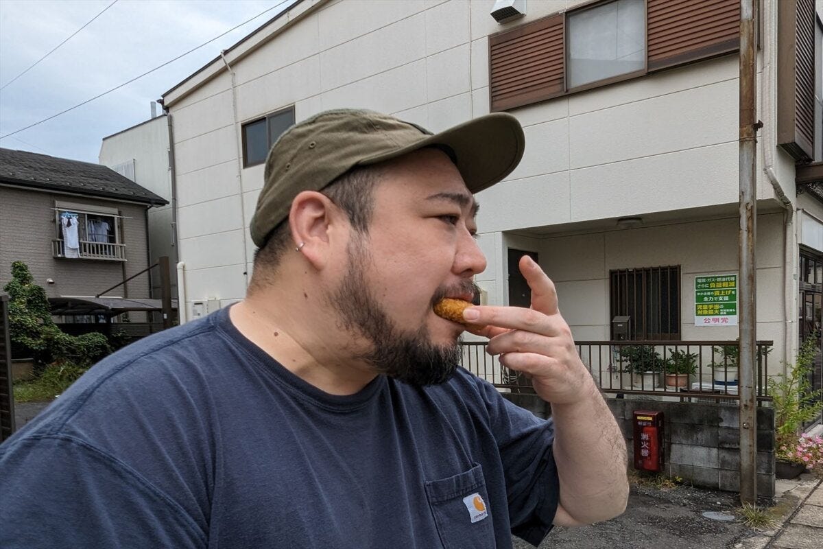 「うまいです。玉ねぎの辛味を残した火の通し具合なので、メンチカツのアクセントとして最適な風味に仕上がっているんですね。これ80円はコロッケと同様にありえないですよ。埼玉最強級じゃないですかね」と、コロッケに続き絶賛する奏さん。