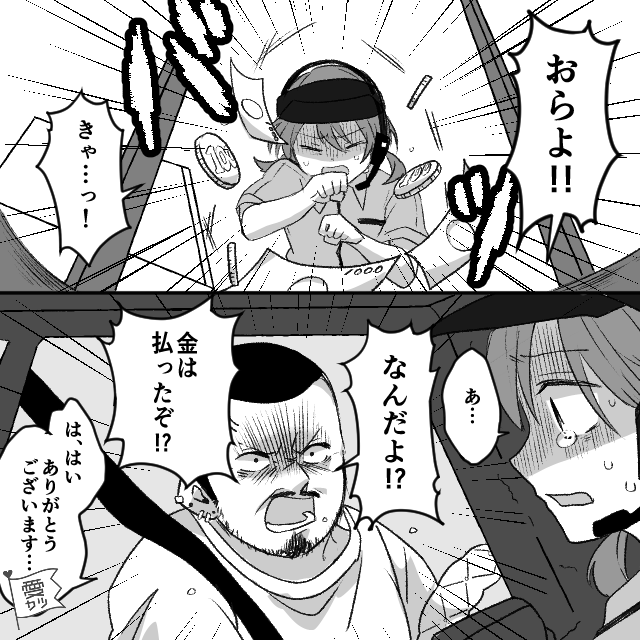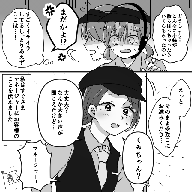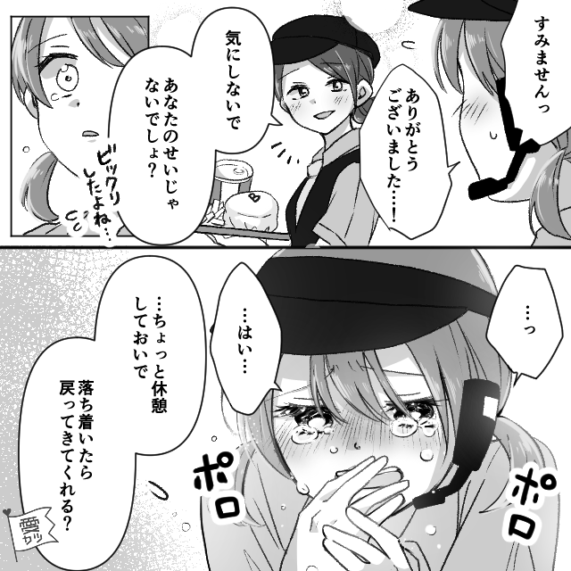 男性客の強い口調に、主人公はひどく動揺していましたが…。