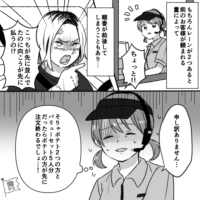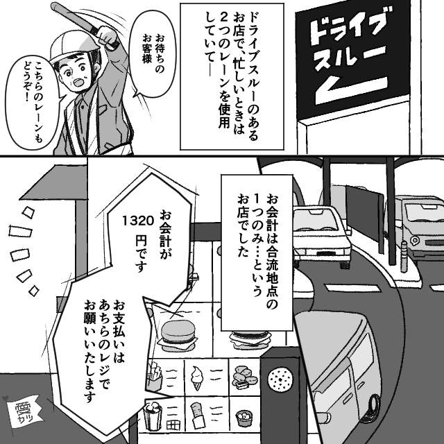 ある日、ドライブスルーの会計係を行っていました。
