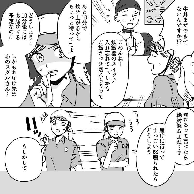 主人公は料理をとりにお店へ向かうと、料理の完成が遅れていてお届け予定時刻に間に合わなさそうになり…!?