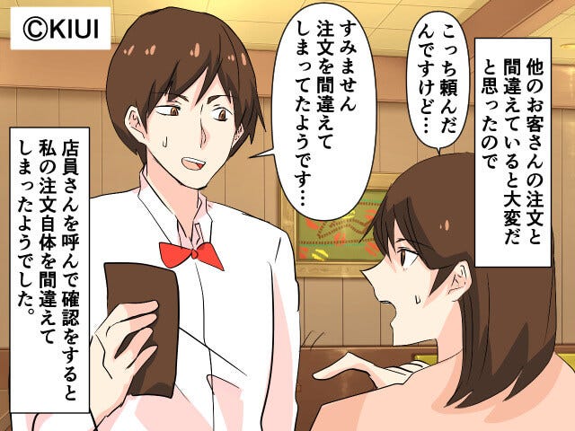 「他の客と間違えて運んでしまっていたら大変」と思った主人公は、すぐに店員を呼んで…。