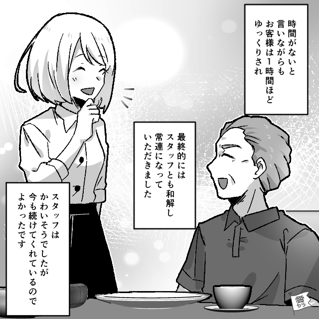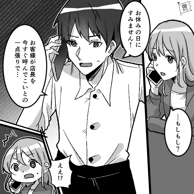 せっかくの休日にお店に呼び出されてしまったものの、主人公の対応により無事に解決できた様子。